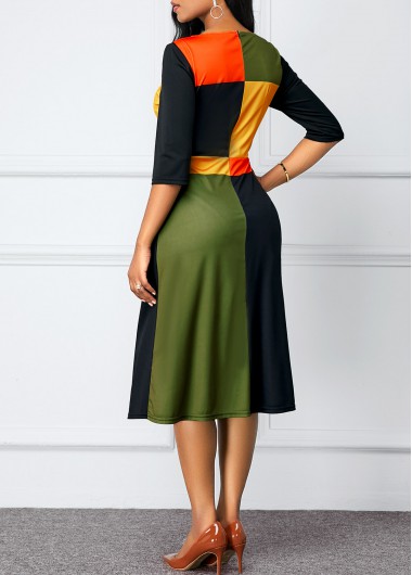 Color Block Half Sleeve Round Neck Dress