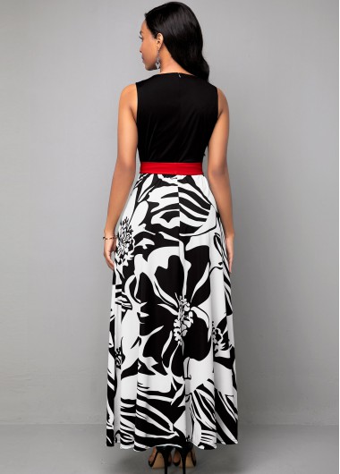 Printed Contrast Sleeveless Round Neck Dress