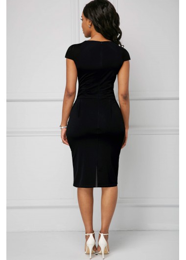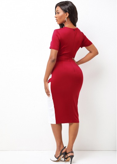 Side Back V Neck Color Block Bodycon Dress