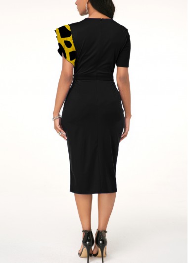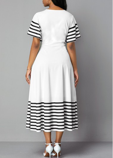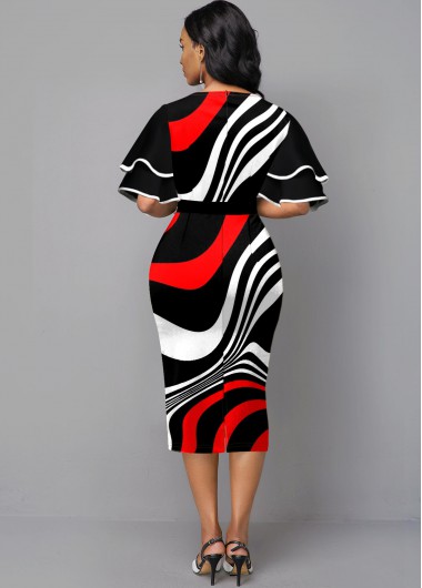 Ruffle Sleeve Stripe Print Contrast Sheath Dress