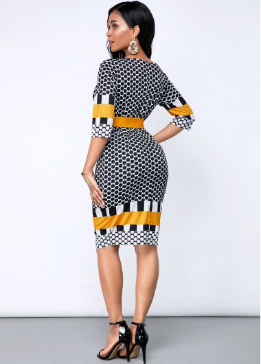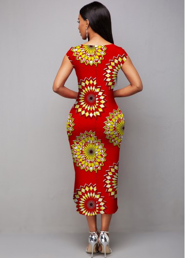 Geometric Print Short Sleeve Sheath Dress