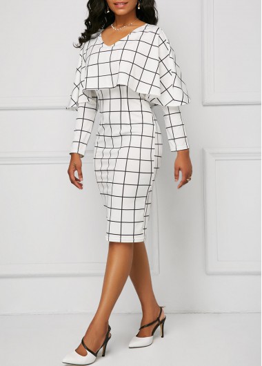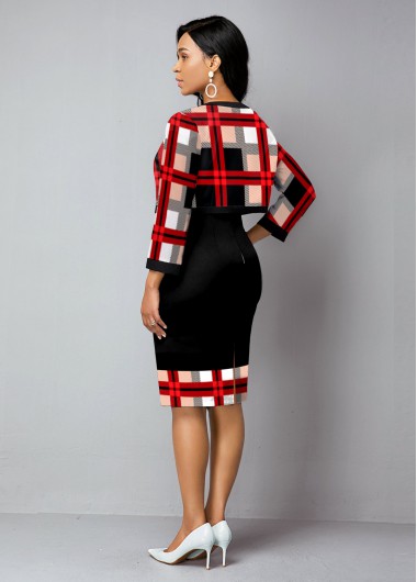 Three Quarters Sleeve Plaid Bodycon Dress