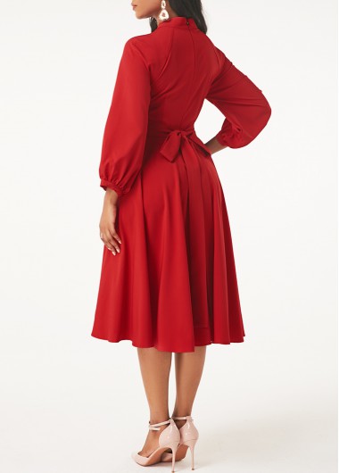 Red Lantern Sleeve Keyhole Neckline Dress