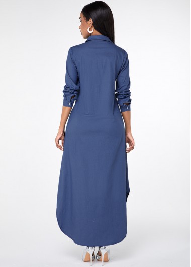 Pocket Button Up Asymmetric Hem Maxi Dress
