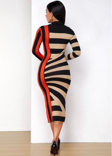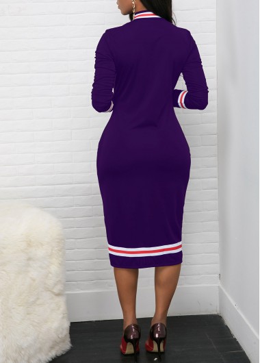 Long Sleeve Contrast Striped Quarter Zip Dress