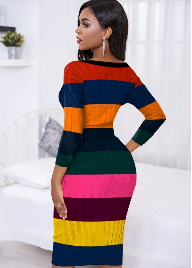 Back Slit Rainbow Stripe Sweater Dress