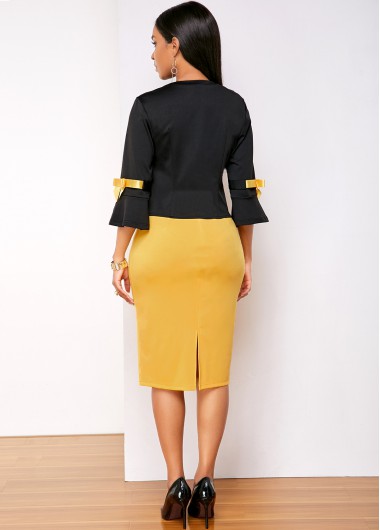 3/4 Sleeve Contrast Faux Two Piece Dress