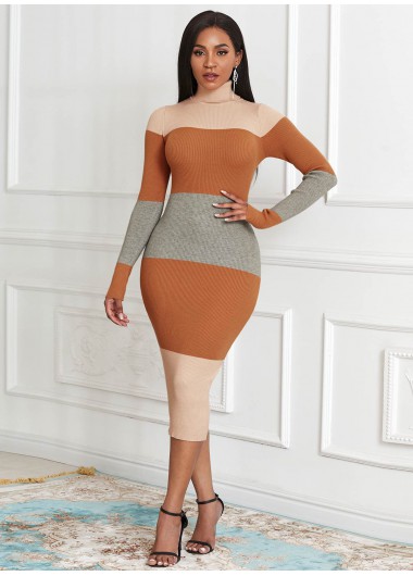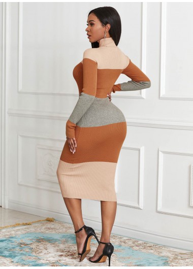 Long Sleeve Color Block Turtleneck Sweater Dress