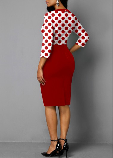 Bowknot Red Polka Dot Split Neck Dress