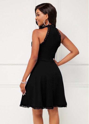 Zipper Closure Black Sleeveless Halter Dress