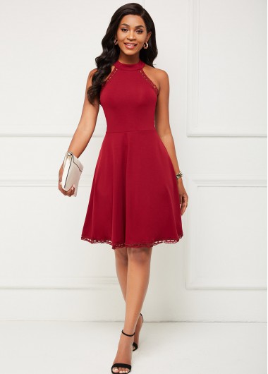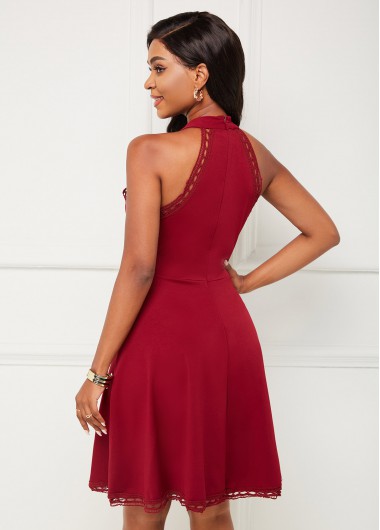 Lace Stitching Bib Neck Sleeveless Dress