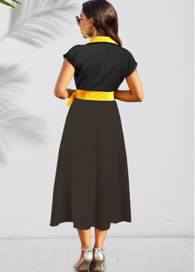 Contrast Short Sleeve Keyhole Front Dress