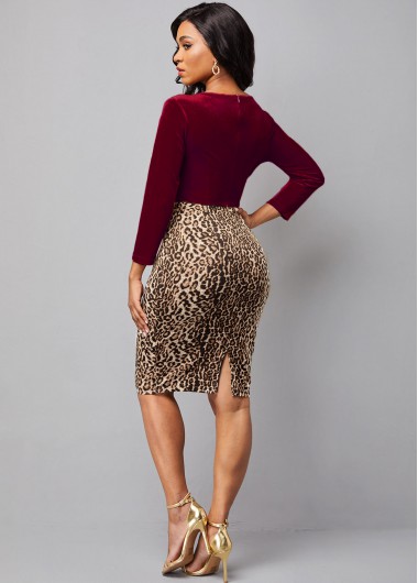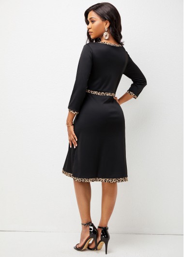 V Neck Leopard 3/4 Sleeve Dress