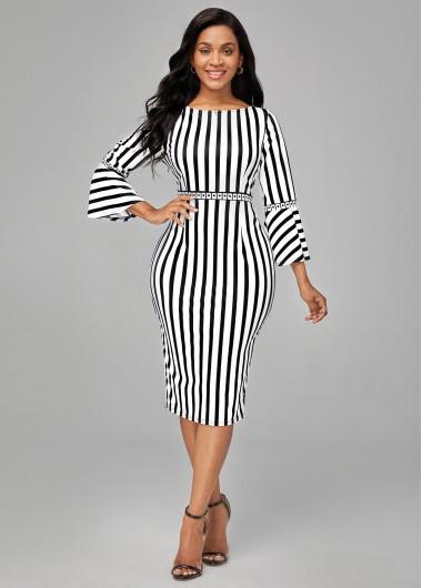 Flare Sleeve Striped Boat Neck Dress