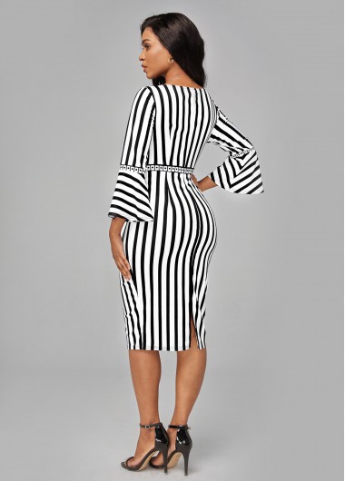 Striped Split Neck Sleeveless Bodycon Dress
