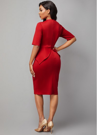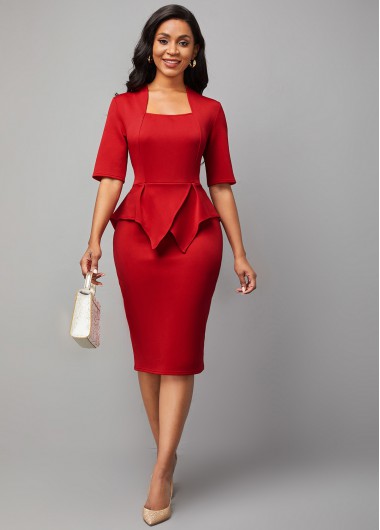 Peplum Waist Solid Half Sleeve Dress