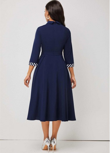 Split Neck 3/4 Sleeve Blue Dress
