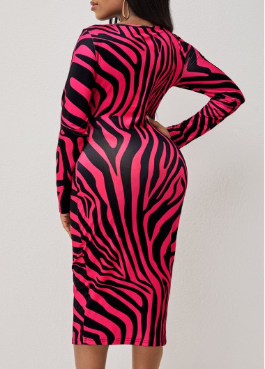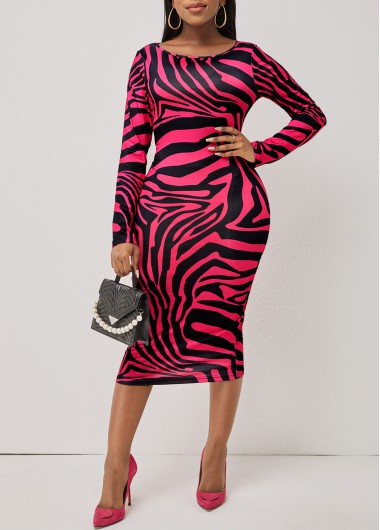 Tribal Print Round Neck Pink 3/4 Sleeve Dress
