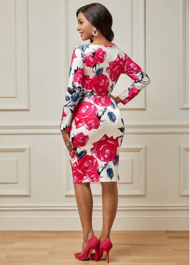 Belted Flower Print Round Neck Dress
