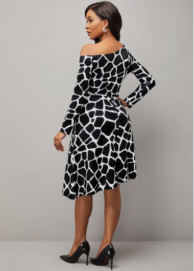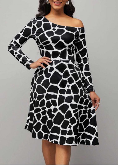 Animal Pattern Color Block Skew Neck Dress